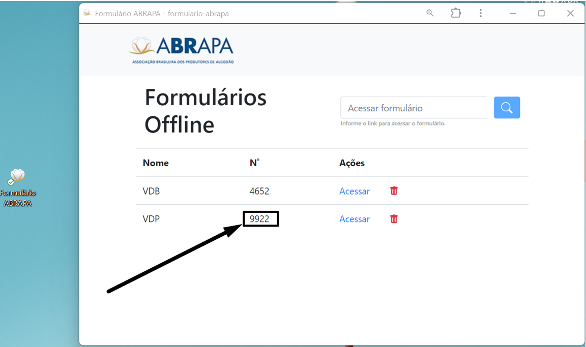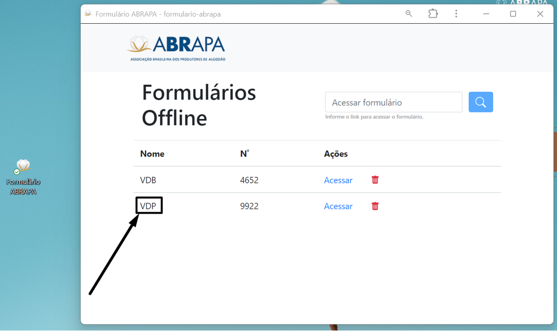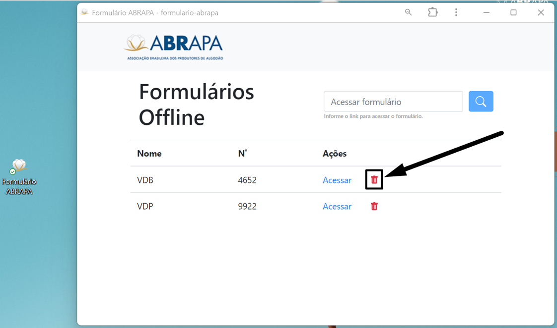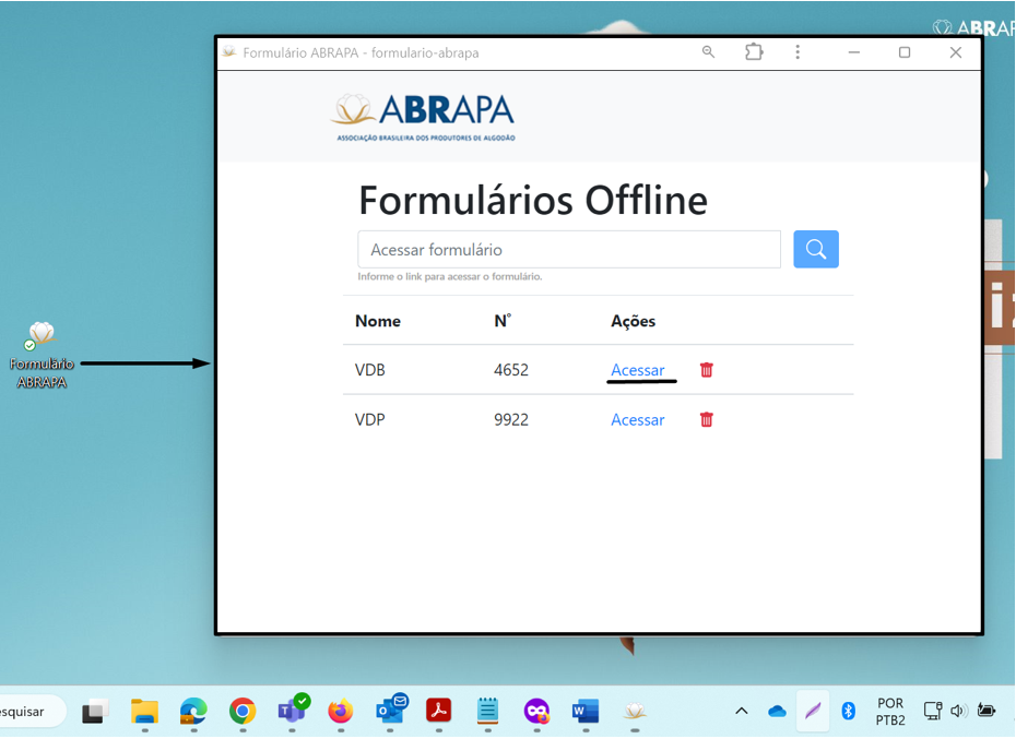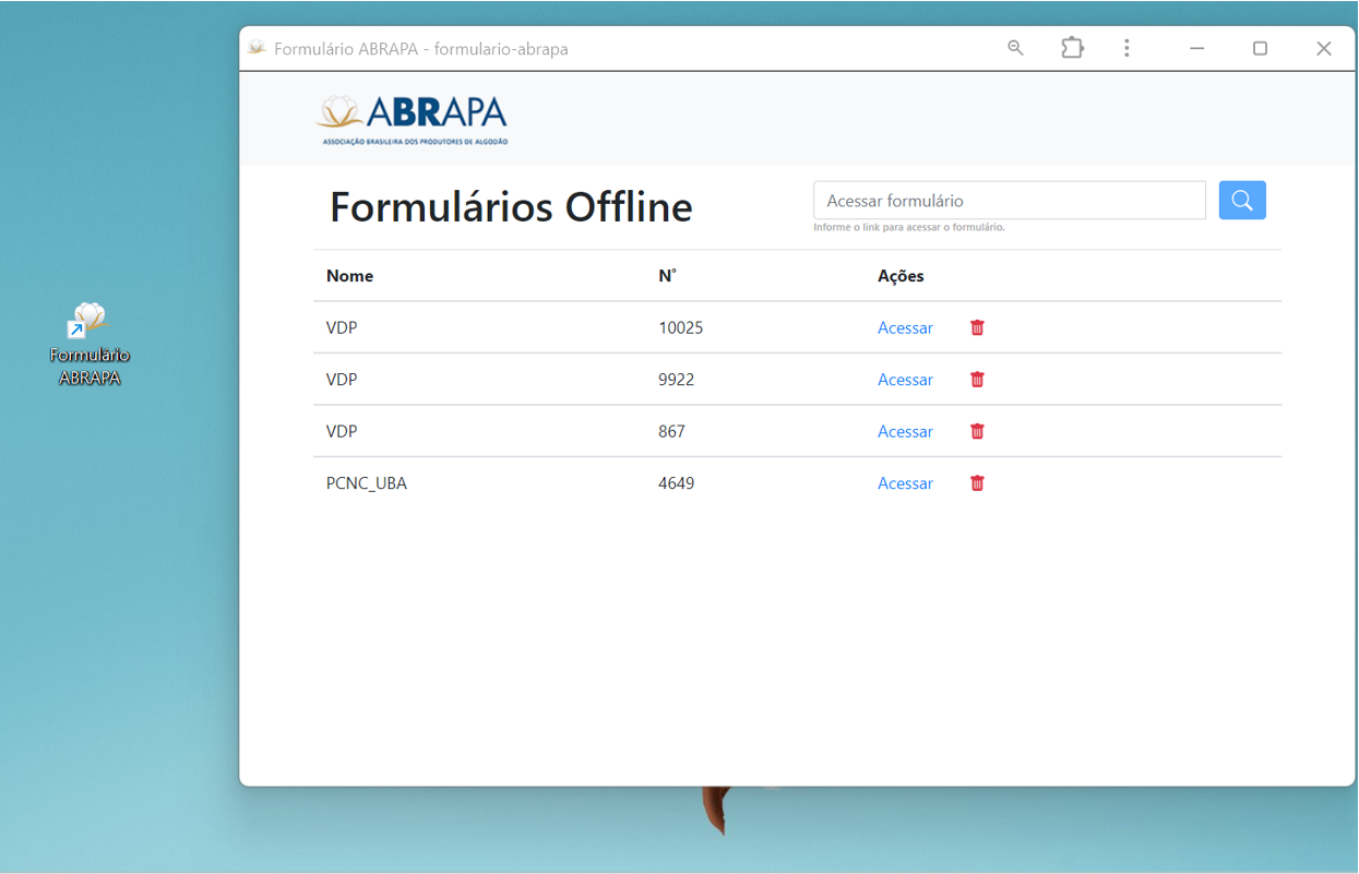 Passo 4: Após a instalação, o ícone do aplicativo aparecerá na área de trabalho, contendo os formulários utilizados, que poderão ser acessados tanto online quanto offline.