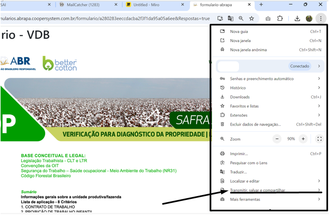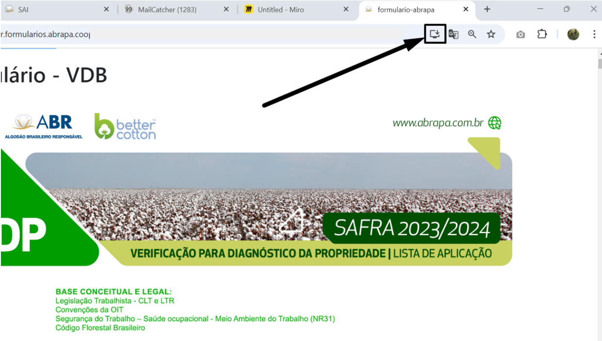 Complemento Passo 1: Caso o formulário não apareça na listagem do aplicativo, basta voltar para o formulário aberto no navegador, clicar no ícone com o formato de uma caixa com uma seta e, em seguida, clicar em "Abrir". O formulário irá para a listagem do aplicativo e será aberto separadamente.