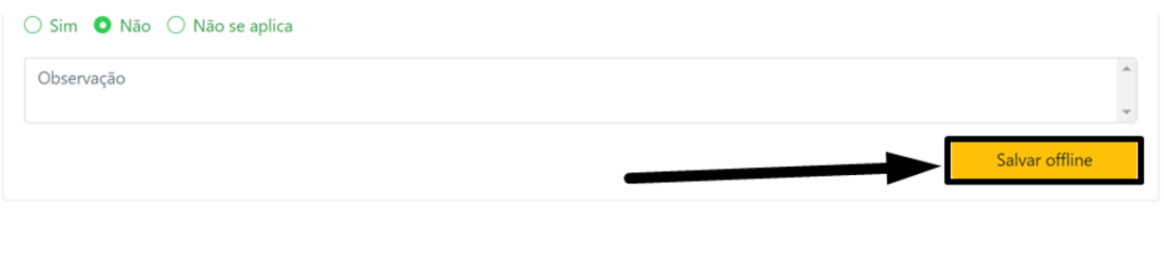 e. Salvar Offline: Este botão somente ficará disponível caso o usuário esteja sem internet. Obs. O formulário verifica a cada 27 segundos se está conectado à internet.