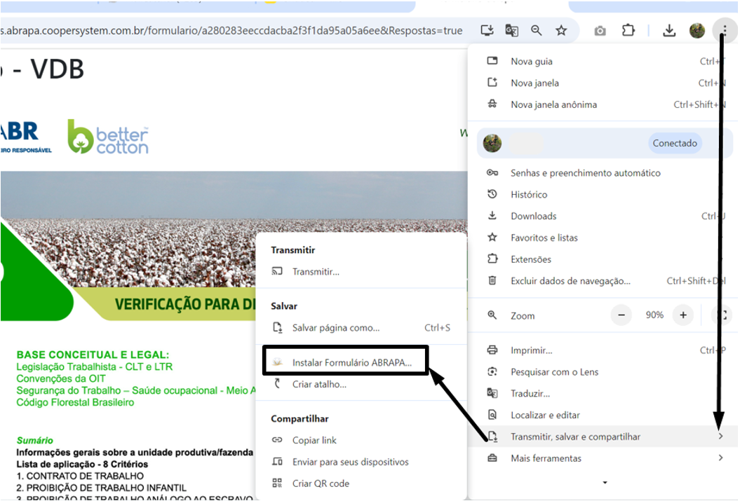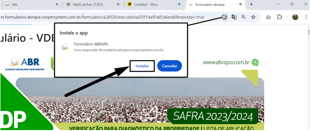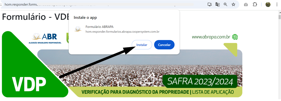 Passo 4: Na segunda parte, selecione “Instalar Formulário ABRAPA”.