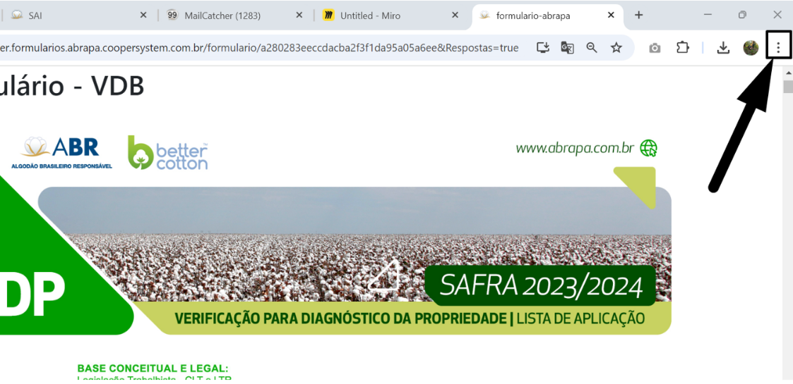 Passo 2: Clique nos três pontinhos no canto superior direito do navegador.