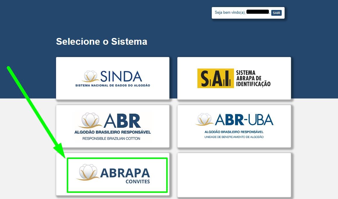 Após o acesso, agora é somente clicar no sistema desejado (CONVITES).
