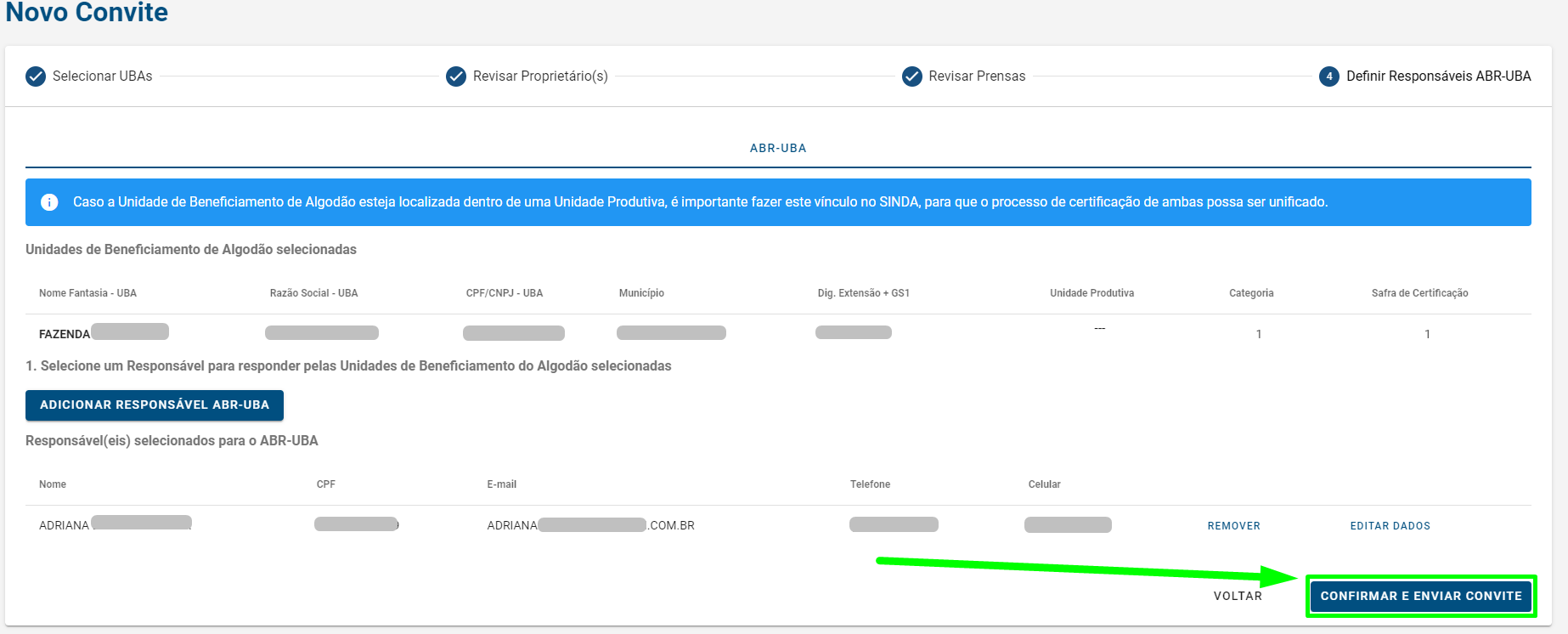 Depois de confirmar o Responsável ABR-UBA, o sistema listará as informações e agora para finalizar, é somente “Confirmar e Enviar Convite”. Imagem 1 Imagem 2 Imagem 3