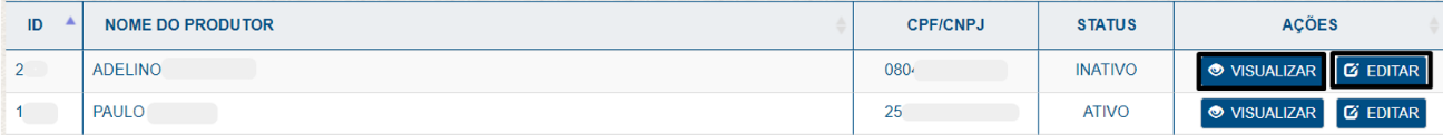 Passo 5 – Podemos utilizar os botões “Visualizar” e “Editar” na mesma linha do produtor desejado (conforme print abaixo).